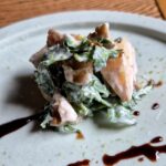 来月の試作 「柿白和え」 柿、春菊、クルミを豆腐で作った衣で和...