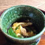 今月の料理 「ホタルイカ卵とじ 鼈甲餡」 ホタルイカとフキを卵...